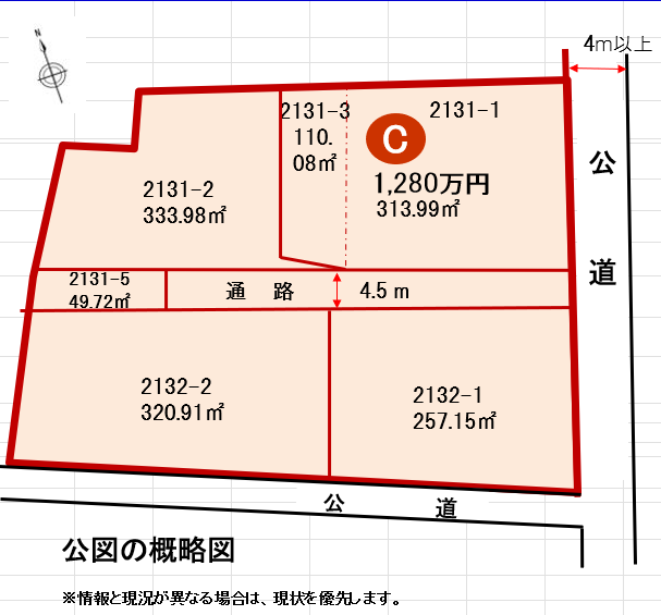 接道状況 | 東側:幅員約3.5m~4.3ⅿの公道 | ||